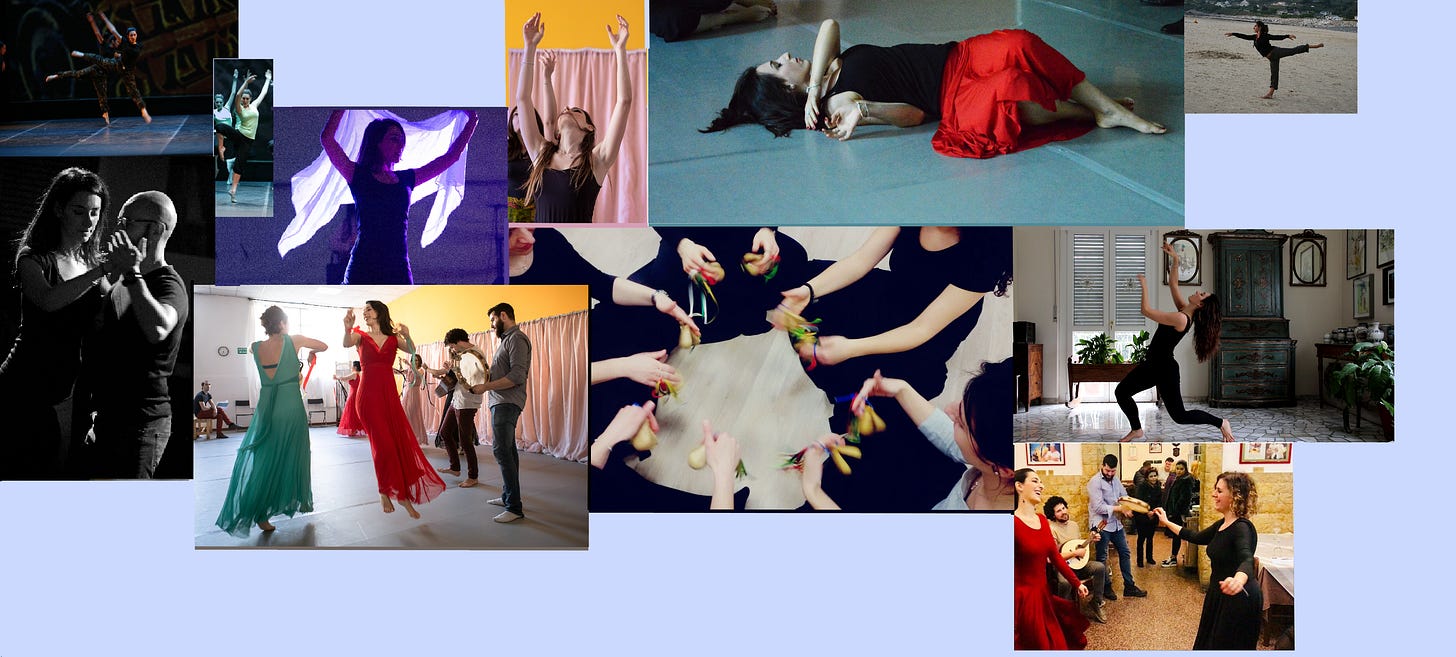 In anni di canti e curiosità disparati, la svolta avvenne quando andai a vedere il balletto classico alla Scala, con l’eleganza dei tutù…il movimento leggiadro delle scarpette……..ehm....quasi. La svolta fu ballare la Macarena alle feste di prima elementare. Non si riusciva più a portarmi a casa! Hai capito Tchaikovsky de noantri! Da allora tredici anni di danza modern, per poi cercare nuove strade di sperimentazione a cui la curiosità ha tolto sempre più freni: pizzica, tarantelle, ma anche boogie woogie e reggaeton e soprattutto esperimenti tra il teatro e la danza…cioè nel teatro-danza? Forse soprattutto nello spazio tra.